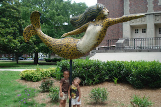 It was a situation where, by the time I realized that even though it was one in the afternoon, the locale was still pretty sketch-tastic. The girls had already seen the mermaid and were bugging out in the backseat. True, I’m a grown-up. In fact, I’m THE grown-up in the this situation and as such, could have made the executive decision to abort. But I didn’t. I will say that the girls could have been doing headstands and picking their noses when I took this picture, for all I cared. I’m pretty sure the surrounding establishments rent by the hour. I hustled them to the mermaid, took the snap, hustled them back to the car, locked the door, and laid waste to the parking lot as we high-tailed it back to our neighborhood.
